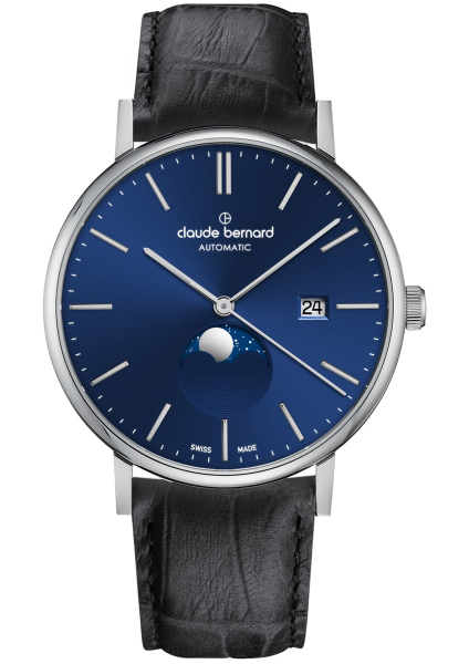 Švýcarské hodinky Claude Bernard, o chod hodinek se stará švýcarský strojek Sellita SW 280-1, jedná se o mechanický strojek s automatickým nátahem a rezervou chodu 38h, pouzdro je vyrobeno z chirurgické oceli 316L, průměr pouzdra je 42mm a jeho výška je 10,8mm, hodinky mají ukazatel měsíční fáze a data, modrý číselník, safírové sklo, zadní transparentní víko, kožený tmavě modrý řemínek z teletiny se vzorem aligátora, váha hodinek je 84gr