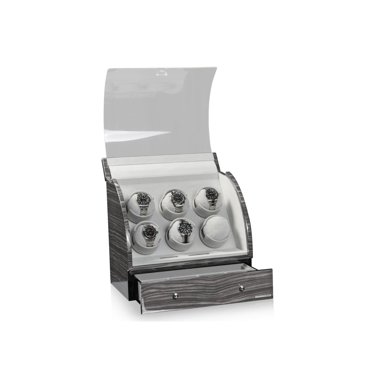 35 970 KčDřevěný natahovač Basel Dark Oak je pro 6 mechanických hodinek s automatickým nátahem, vzor - tmavý dub, ovládání LCD display, každý rotor lze nastavit samostatně, další úložný prostor pro 4 hodinky a jiné cennosti, nastavitelné denní otáčky 650, 900, 1200, 1500 a 1800 za den, váha 7,3kg, rozměry: š37xv34xh24cm, adaptér je součástí balení